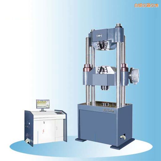 WAW-300C/600C/1000C型微機(jī)控制電液伺服萬能試驗(yàn)機(jī),主要用于金屬、非金屬的拉伸、壓縮、彎曲、剪切等試驗(yàn)。增加簡單的附具和裝置,,還能對木材、水泥、混凝土、橡膠及其制品進(jìn)行試驗(yàn)。 GB/T 228.1-2010《金屬材料 拉伸試驗(yàn) 第1部分 室溫試驗(yàn)方法》 1.WAW-300C/600C/1000C型微機(jī)控制電液伺服萬能試驗(yàn)機(jī),采用油缸下置式主機(jī),,拉伸空間位于主機(jī)的上方,,壓縮、彎曲試驗(yàn)空間位于主機(jī)下橫梁和工作臺之間油缸活塞采用間隙密封經(jīng)久耐用 2.下橫梁升降采用盤式電機(jī)、蝸輪蝸桿、螺母轉(zhuǎn)動(dòng)帶動(dòng)橫梁升降 3.高精度油壓傳感器測力測量精度高,便于維修更換 4.采用進(jìn)口液壓油泵 5.采用進(jìn)口電液伺服閥控制精度高 6.高精度測控系統(tǒng)控制精度高(自主產(chǎn)權(quán)) 7.軟件技術(shù)(自主產(chǎn)權(quán))…….