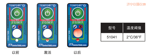TempDot™ Minus標(biāo)簽需存儲(chǔ)在室溫下,,并且必須在反應(yīng)溫度 以上被激活。激活是通過用手指推壓,標(biāo)簽 底部的小窗口變?yōu)榧t色或部分變紅色以指示激活,,但激活后并不需要保持紅色。當(dāng)使用了上述反應(yīng)溫度 標(biāo)簽的產(chǎn)品暴露于閾值以下的溫度,,白色的大窗口變?yōu)榧t色或部分紅色,在反應(yīng)溫度 以上將溫度標(biāo)簽用 于產(chǎn)品。如果一個(gè)產(chǎn)品暴露于閾值以下的溫度,,白色的大窗口變紅色或部分紅色,TempDot™ Minus標(biāo)簽 提供即時(shí)的視覺指示。為達(dá)到最佳效果,標(biāo)簽應(yīng)保持垂直位置,,其反應(yīng)期間,紅色箭頭須指向上方。