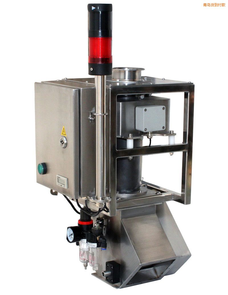 性能特點(diǎn): 通過剔除系統(tǒng)進(jìn)行快速剔除,能減少物料損失,不會干擾正常的生產(chǎn)過程。 檢測材料特性:散料(粉末、顆粒等),干燥,金屬檢測儀標(biāo)準(zhǔn),流動(dòng)性好 剔除方式:翻板自動(dòng)剔除金屬雜質(zhì),食品專用金屬檢測儀,并聲光報(bào)警 靈敏度:可達(dá)Fe0.7mm,重金屬鉻檢測儀,SUS1.1 mm,非Fe0.75mm(更高可定制) 配有SMC氣缸、MAC電磁閥、計(jì)數(shù)器、空氣過濾器等 支架、料斗可根據(jù)客戶要求定做 防護(hù)等級:IP54